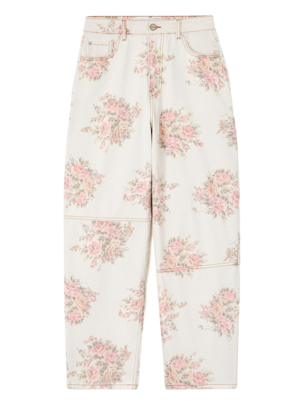 floral-print panelled jeans Highlights - Off-white - Floral print - Panelled design - Contrast stitching - Button fly Imported Composition Fabric 100% Washing instructions Read Manufacturer Guidelines