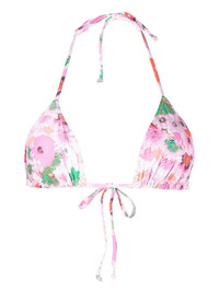 floral-print string bikini top pink/white/multicolour recycled polyamide blend all-over floral print triangle cup halterneck tie fastening rear tie fastening full lining Be mindful to try on swimwear over your own garments. Conscious: This item is made from at least 50% recycled or upcycled materials. For recycled synthetic clothing products we highly recommend using a microfibre-catching washing bag to ensure that no microplastics that can pollute water are released in the process. Imported Composition Outer: Recycled Polyamide 78%, Spandex/Elastane 22% Lining: Recycled Polyamide 83%, Spandex/Elastane 17%
