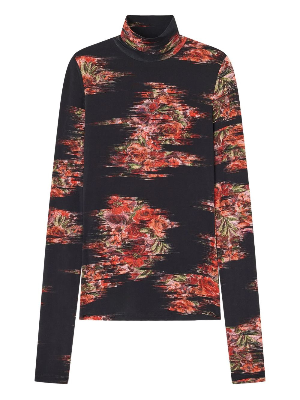 floral-print turtleneck T-shirt Highlights - Black - Floral print - Turtleneck - Long sleeves Imported Composition Viscose 95%, Elastane 5% Washing instructions Read Manufacturer Guidelines