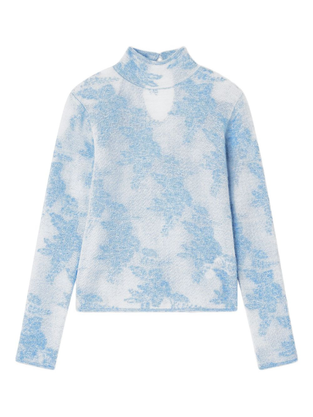 flower-jacquard mockneck sweater Highlights - Light blue - Flower jacquard - Mock neck - Long sleeves - Keyhole detail at back Made in Italy Composition Alpaca 39%, Polyamide 30%, Wool 16%, Recycled Polyamide 15% Washing instructions Read Manufacturer Guidelines