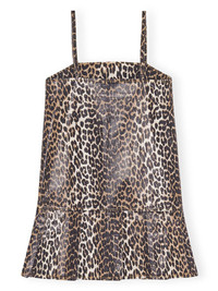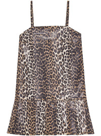 foiled-finish printed mini dress Highlights - Animalier brown - Organic cotton blend - Denim - Leopard print - Foiled finish - Concealed side zip fastening - Thin shoulder straps - Sleeveless - Pleated skirt - Straight hem - Thigh-length Imported Composition Organic Cotton 99%, Elastane 1%