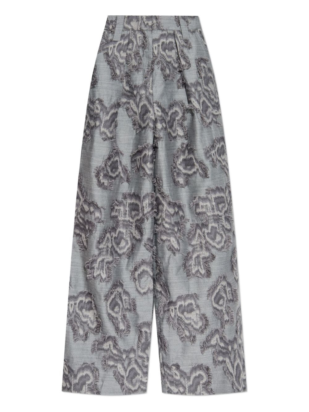 frayed floral palazzo pants Highlights - Grey - Frayed floral pattern - Wide leg Imported Composition Organic Cotton 51%, Wool 43%, Polyester 6% Washing instructions Read Manufacturer Guidelines