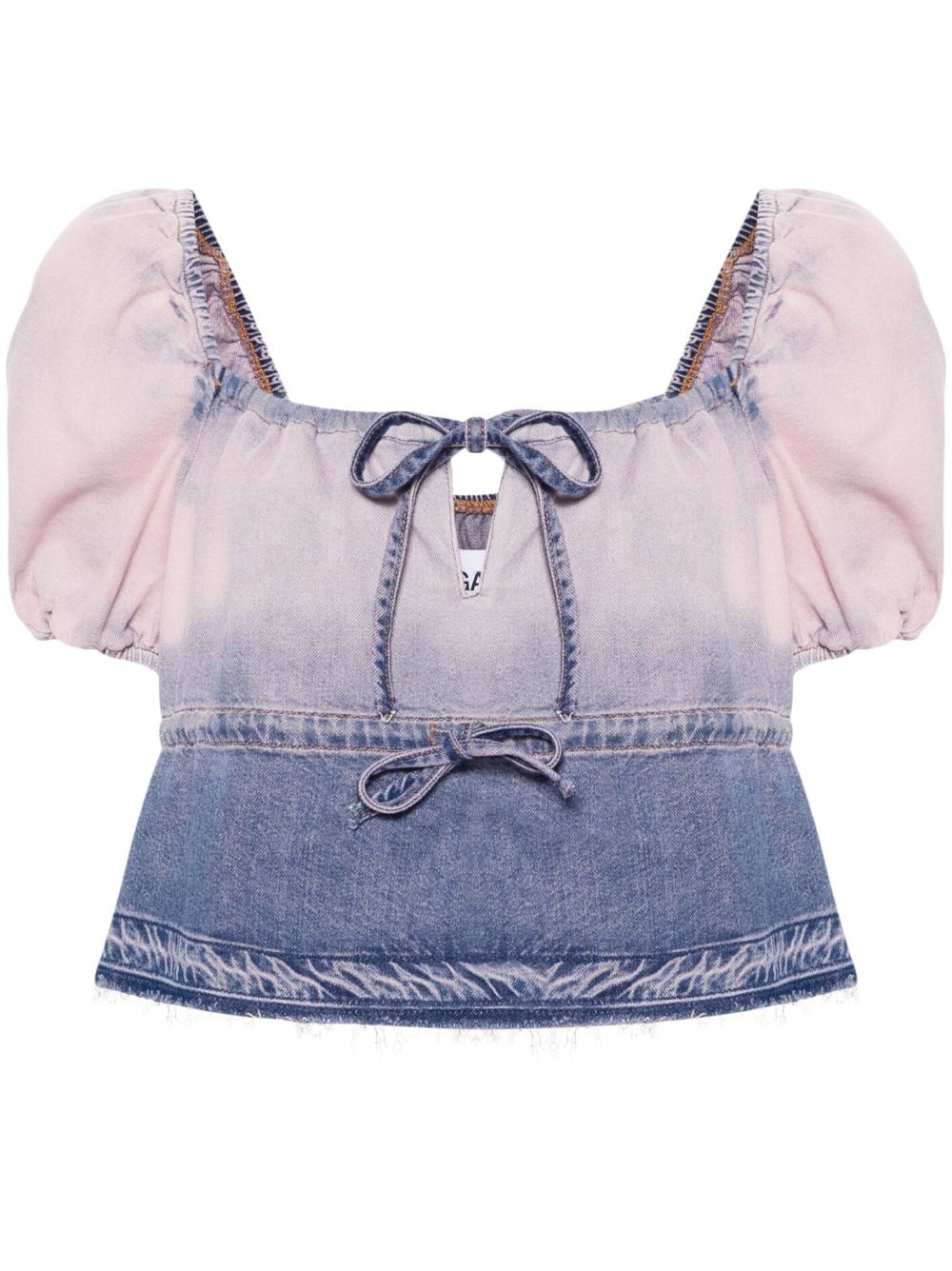 PURPLE BLEACH FUTURE DENIM PUFF SLEEVE TOP