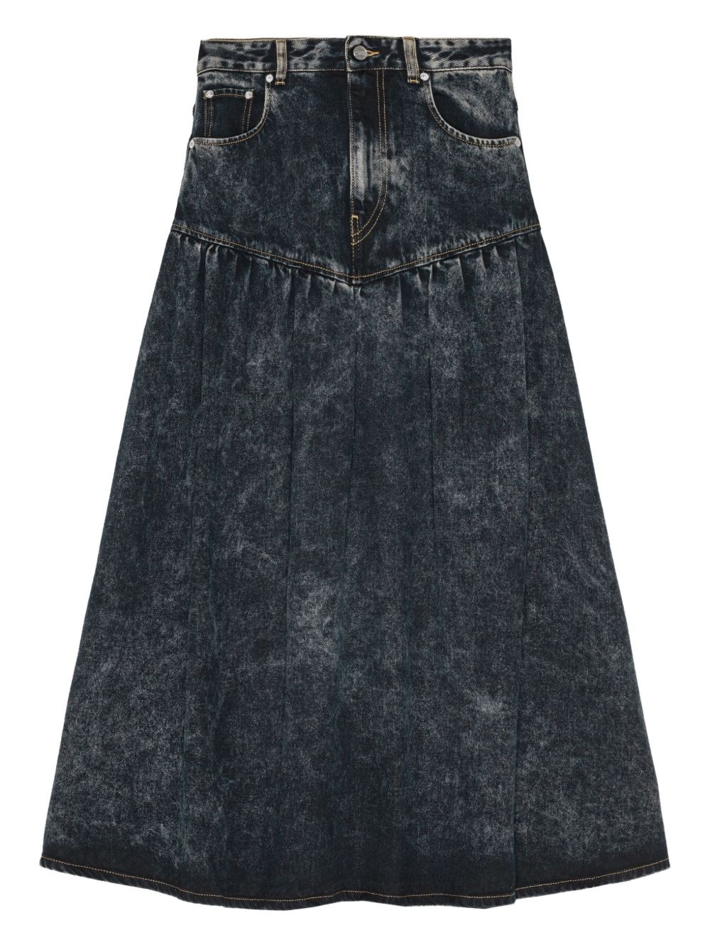 gathered-detail denim skirt
