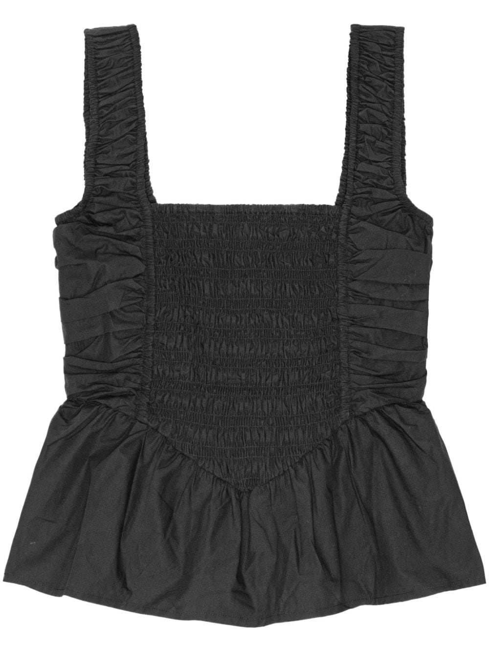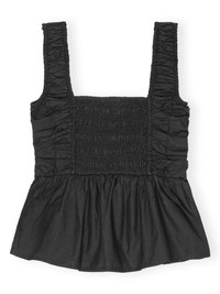 BLACK COTTON POPLIN SMOCK STRAP TOP