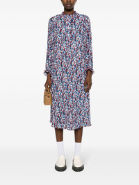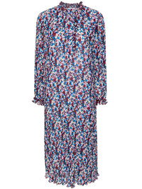 georgette pleated midi dress Fully pleated, this Ganni midi dress is all-over printed with a mini-floral pattern in multicolour. The piece is handcrafted from lightweight georgette, with a fluid movement. Highlights - Royal blue/multicolour - Recycled polyester - Georgette crepe - Floral print - Ruffle collar - Concealed front button fastening - Long sleeves - Fully pleated - Long length - Full lining Imported Composition Outer: Recycled Polyester 100% Lining: Recycled Polyester 100% SIZE & FIT Model measurements Height 5 ft 11 in(1.8 m) Bust/Chest 32.67 in(83 cm) Hips 36.22 in(92 cm) Waist 24.4 in(62 cm) FittingInformation Designed for a relaxed fit, this piece allows for comfort and movement when worn Made from a midweight non-stretch fabric This piece fits true to size – take your usual size Washing instructions Machine Wash