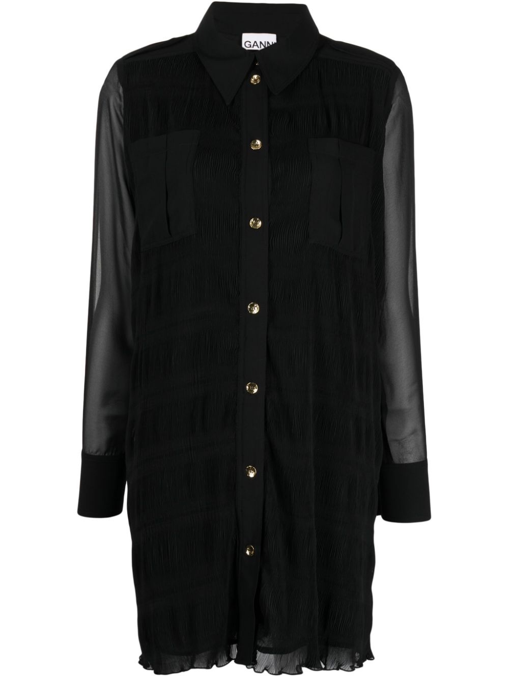 Georgette straight-point collar dress Highlights - Black - Recycled polyester - Textured finish - Semi-sheer construction - Straight-point collar - Front button fastening - Two chest patch pockets - Long sleeves - Buttoned-cuff sleeves - Straight hem - Thigh-length Imported Composition Outer: Recycled Polyester 100% Lining: Recycled Polyester 100% SIZE & FIT Model measurements Height 5 ft 10 in(1.77 m) Bust/Chest 28.74 in(73 cm) Hips 35.82 in(91 cm) Waist 24.4 in(62 cm) FittingInformation Designed to be unstructured, offering a loose fit throughout Slightly short in length; consider your own measurements Made from a lightweight non-stretch fabric This piece fits true to size – take your usual size Washing instructions Machine Wash