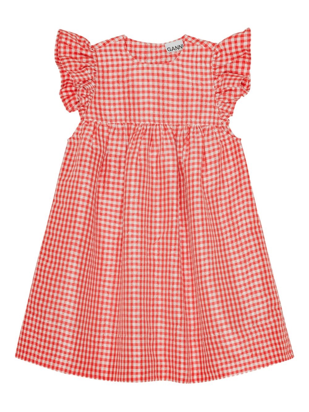 gingham-print dress Highlights - Bright red - Rear button fastening - Round neck - Cap sleeves - Flared skirt Imported Composition Fabric 100%