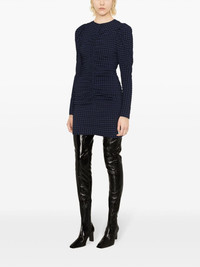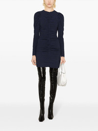 checkered seersucker mini dress The seersucker construction and ruched bodice of this navy and black GANNI minidress add depth and texture to the bucolic gingham check. Signature puff sleeves hark to the brand’s formative knitwear designs. Highlights - Navy blue/black - Recycled polyester blend - Stretch-design - Seersucker texture - Gingham check print - Ruched detailing - Round neck - Concealed rear zip fastening - Long sleeves - Straight hem - No lining - Thigh-length Imported Composition Recycled Polyester 51%, Polyamide 43%, Elastane 6% SIZE & FIT Model measurements Height 5 ft 10 in(1.79 m) Bust/Chest 31.49 in(80 cm) Hips 35.03 in(89 cm) Waist 23.62 in(60 cm) FittingInformation Designed for a close fit throughout Made from a midweight stretch fabric, this piece offers elasticity and flexibility when worn This piece fits true to size – take your usual size Measurement SLEEVE LENGTH 27 in(68.6 cm) HIPS 30 in(76.2 cm) LENGTH 34.01 in(86.4 cm) WAIST 25.98 in(66 cm) BUST 30 in(76.2 cm) Washing instructions Machine Wash