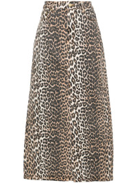 high-waisted leopard-print denim midi skirt Highlights - Animalier brown - Stretch organic cotton - Washed denim - All-over leopard print - Logo patch to the rear - High-waisted - Belt loops - Front button and zip fastening - Classic five pockets - Straight hem - Front slit - Rear slit - Mid-length Imported Composition Organic Cotton 99%, Spandex/Elastane 1% SIZE & FIT Model measurements Height 5 ft 10 in(1.77 m) Bust/Chest 33.07 in(84 cm) Hips 37 in(94 cm) Waist 24.8 in(63 cm) FittingInformation This maxi-length skirt is intended to be worn high on the waist The vented hem offers movement at the rear Made from a midweight fabric This piece fits true to size – take your usual size Washing instructions Machine Wash