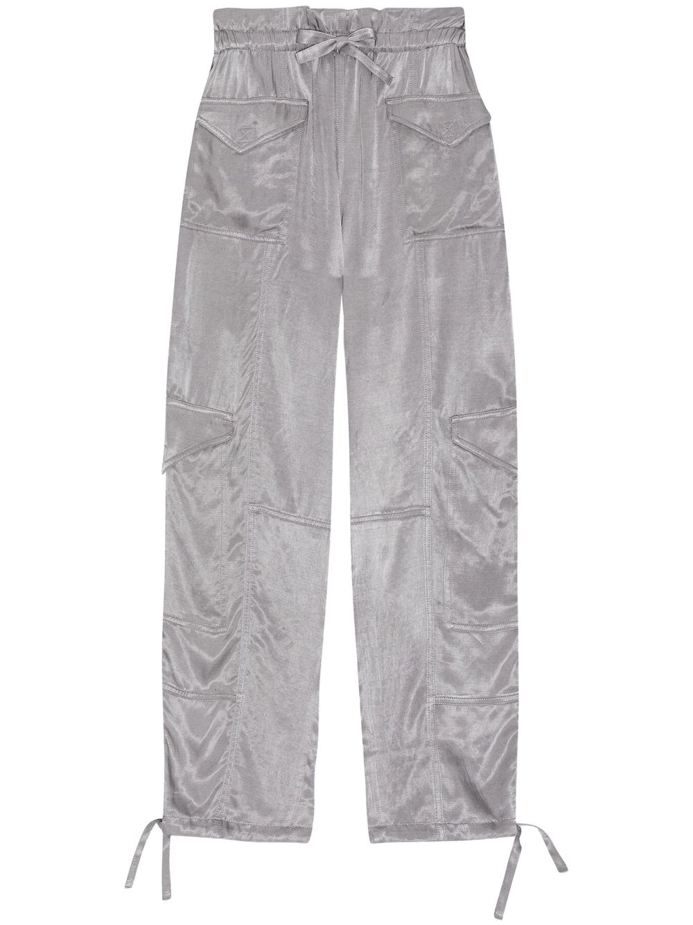 high-waisted trousers Highlights - Battleship grey - Elasticated drawstring waistband - Multiple cargo pockets - Drawstring hem Imported Composition Cupro 50%, EcoVero Viscose (LENZING) 50% Washing instructions Read Manufacturer Guidelines