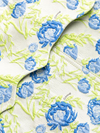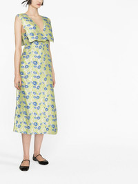 jacquard-pattern V-neck dress Decorated with multicolour patterned jacquard, this dress from GANNI is aligned with the label's cheerful aesthetic. The garment is completed with a scalloped Rythim collar, a signature of the brand for the season. Highlights - Light grey/green/blue - Recycled polyester blend - Patterned jacquard - V-neck - V-back - Scallop collar - Sleeveless - Mid-length Imported Composition Recycled Polyester 65%, Polyester 27%, Polyamide 8% SIZE & FIT Model measurements Height 5 ft 10 in(1.77 m) Bust/Chest 31.49 in(80 cm) Hips 35.03 in(89 cm) Waist 23.22 in(59 cm) FittingInformation Designed for a close fit at the chest and waist with a loose fit at the hip Made from a midweight non-stretch fabric This piece fits true to size – take your usual size Washing instructions Machine Wash