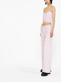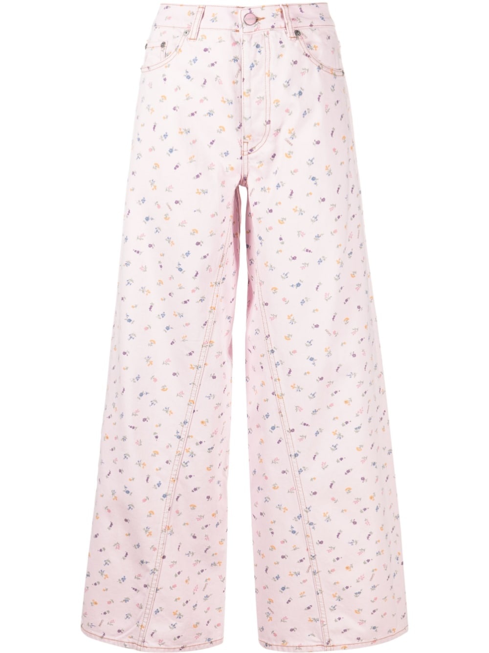 Joezy floral-print wide-leg jeans Scandinavian brand GANNI showcases their sustainable ethos through a contemporary design with the Joezy jeans. Cut from organic cotton, this wide-leg pair is dotted with petite flowers throughout, a nod to the brand's cheerful essence. Highlights - Light pink - Organic cotton - All-over floral print - Mid-rise - Contrast stitching - Belt loops - Front button and zip fastening - Classic five pockets - Wide leg Imported Composition Organic Cotton 100% SIZE & FIT Model measurements Height 5 ft 10 in(1.78 m) Bust/Chest 29.92 in(76 cm) Hips 34.64 in(88 cm) Waist 23.62 in(60 cm) Washing instructions Machine Wash