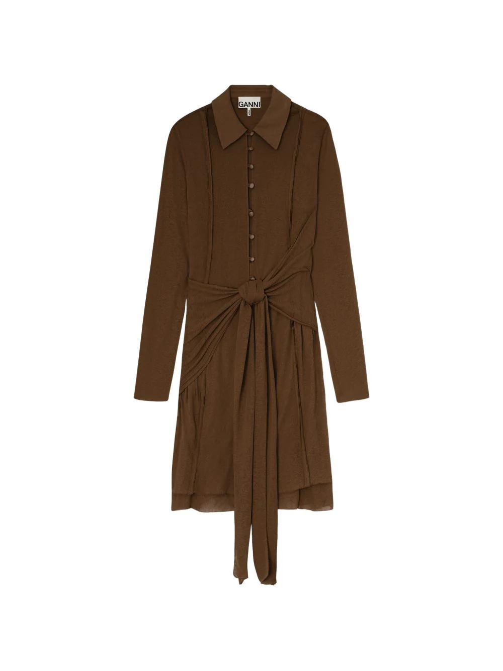 knot detail buttoned midi dress Highlights - Brown - Front knot - Button fastening - Long sleeves - Panelled design - Classic collar Imported Composition Fabric 100% Washing instructions Read Manufacturer Guidelines