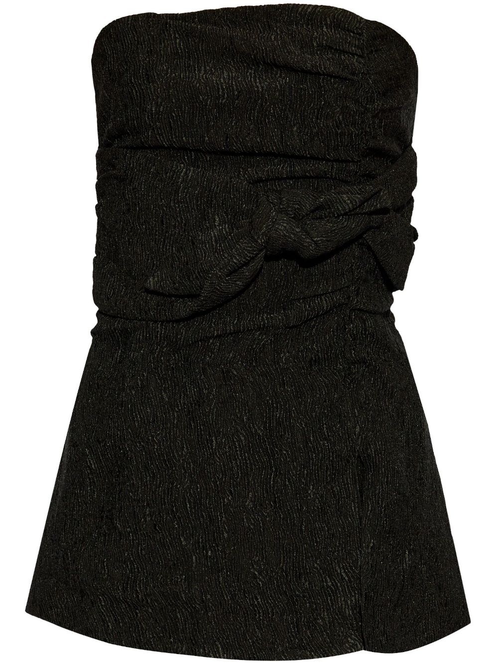 knot-detailing strapless top Highlights - Black - Textured finish - Knot detailing - Strapless - Gathered detailing - Rear zip fastening - Straight hem Imported Composition Other fibres 100% Washing instructions Dry Clean Only
