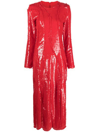 lace-embellished sequinned gown GANNI leans heavily into maximalist aesthetics with this scarlet gown. Made from low-impact recycled polyester, it boasts a flared silhouette covered in scores of light-catching sequins, evoking a sparkling dimension. Lace detailing runs throughout its entire length in an undulating pattern, lending textural contrast and graphic lines, whilst multiple slits add a movement-enhancing spliced element. Highlights - Scarlet - Recycled polyester - Sequin design - Lace detailing - Round neck - Concealed rear zip fastening - Long sleeves - Flared skirt - Front and rear slits - Ankle-length - Flared hem Imported Composition Outer: Recycled Polyester 100% Lining: Recycled Polyester 100% SIZE & FIT Model measurements Height 5 ft 11 in(1.8 m) Bust/Chest 30.7 in(78 cm) Hips 35.03 in(89 cm) Waist 24.4 in(62 cm) Measurement SLEEVE LENGTH 24.01 in(61 cm) HIPS 35.43 in(90 cm) LENGTH 55.11 in(140 cm) WAIST 27.55 in(70 cm) Washing instructions Hand Wash