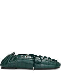 GREEN CROC-EMBOSSED LACE-UP FLATS