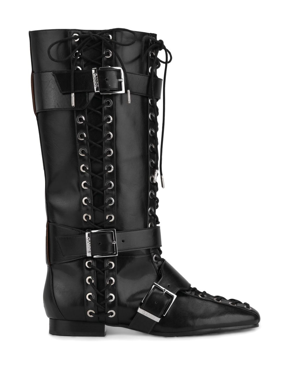 lace-up boots Highlights - Black - Front lace-up fastening - Buckle-strap fastening - Square toe - Leather sole Imported Composition Outer: Calf Leather 100% Sole: Calf Leather 100% Lining: Calf Leather 100%