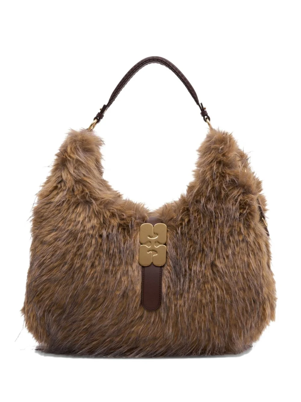 large Kat shoulder bag Highlights - Brown - Top handle - Flap magnetic clasp - Two interior compartments - Two interior zipped pockets - Gold-tone hardware Imported Composition Outer: Recycled Polyester 100% Lining: Recycled Polyester 85%, Polyester 15% SIZE & FIT Measurement DEPTH 4.72 in(12 cm) HEIGHT 11.61 in(29.5 cm) WIDTH 17.51 in(44.5 cm)