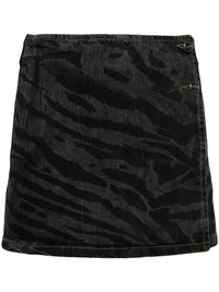 zebra-print denim miniskirt Highlights - Black - Organic cotton - Denim - All-over zebra print - Wrap design - Contrast stitching - High-waisted - Side button fastening - A-line - Straight hem - Thigh-length Imported Composition Organic Cotton 100% SIZE & FIT Model measurements Height 5 ft 10 in(1.77 m) Bust/Chest 27.95 in(71 cm) Hips 34.64 in(88 cm) Waist 22.83 in(58 cm) FittingInformation This mini-length skirt is intended to be worn low on the hips Sturdy and hard-wearing, this denim piece offers no stretch This piece fits true to size – take your usual size