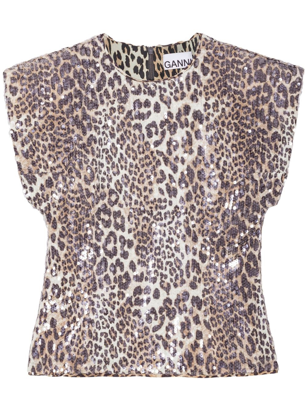leopard-print blouse Highlights - Beige - Concealed rear zip fastening - Sequin embellishment - Crew neck - Cap sleeves Imported Composition Fabric 100%
