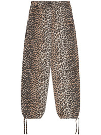 LEOPARD WASHED COTTON CANVAS DRAWSTRING TROUSERS