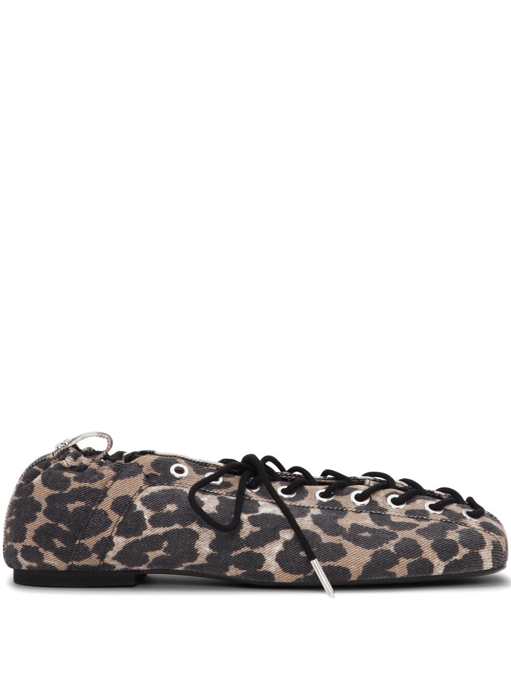 LEOPARD PRINTED DENIM EYELETS LACE UP BALLERINAS