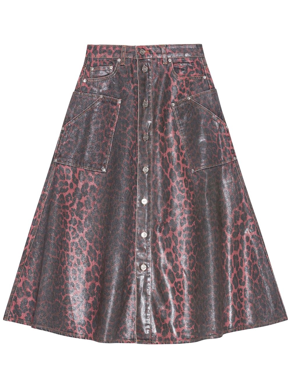 LEOPARD FOIL DENIM MIDI SKIRT