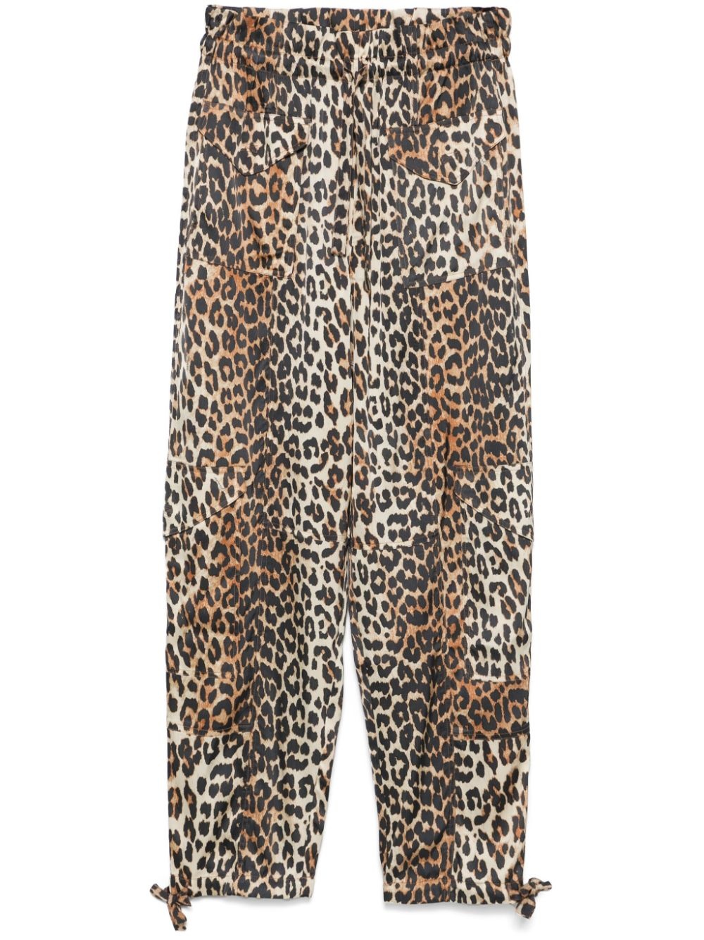 leopard-print satin trousers Highlights - Brown - Satin finish - All-over leopard print - Drawstring fastening Imported Composition Cotton 100%, Viscose 95%, Elastane 5% SIZE & FIT Model measurements Height 5 ft 10 in(1.77 m) Bust/Chest 34.64 in(88 cm) Hips 35.43 in(90 cm) Waist 26.37 in(67 cm) FittingInformation Designed for a relaxed tapered cut, these trousers allow for a close fit at the waist and offer a loose fit at the thighs, with a closer fit toward the ankles The elasticated waist allows for a comfortable fit Made from a lightweight stretch fabric, this piece offers elasticity and flexibility when worn