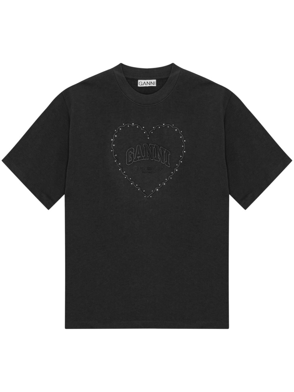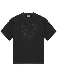 BLACK HEAVY COTTON DROP SHOULDER HEART T-SHIRT