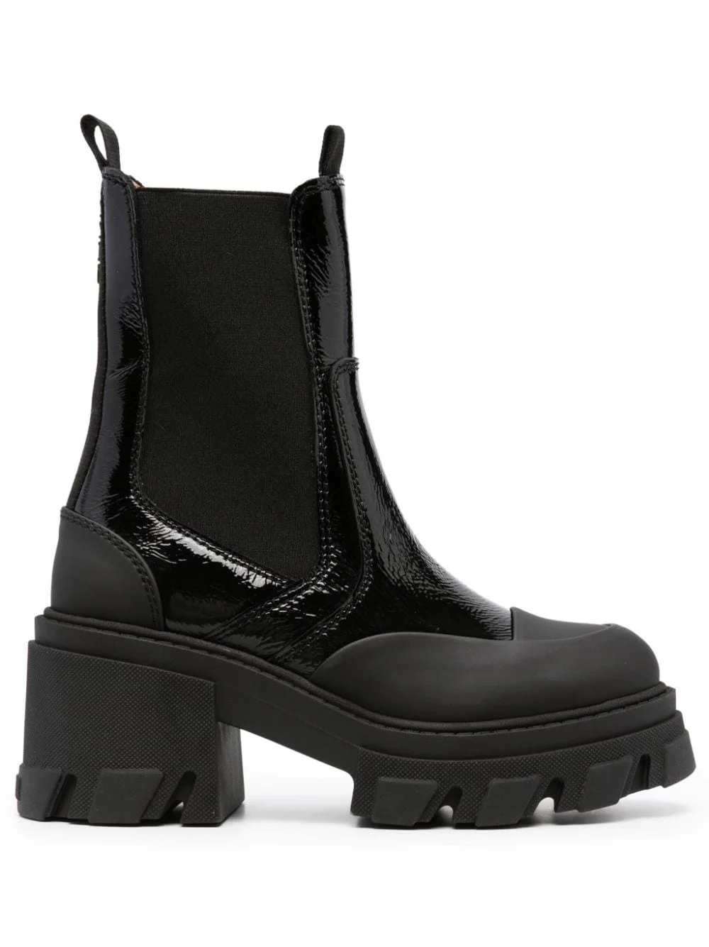 logo-embossed panelled Chelsea boots Highlights - Black - Panelled design - Embossed logo to the rear - Tonal stitching - Pull-on style - Round toe - Ankle-length - Elasticated side panels - Double pull-tab at the opening - Chunky rubber sole - Block heel Imported Composition Outer: Fabric 100%, Rubber 100% Lining: Fabric 100% Sole: Rubber 100% SIZE & FIT Measurement CIRCUMFERENCE 9.84 in(25 cm) HEEL 3.14 in(8 cm) HEIGHT 6.69 in(17 cm) Sole height 1.37 in(3.5 cm)