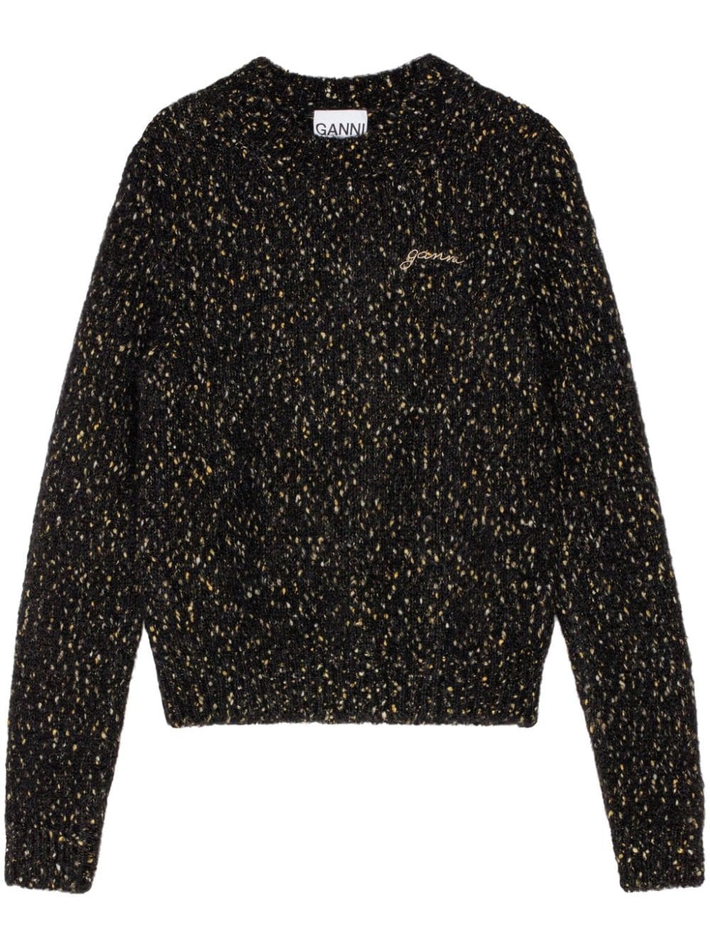 logo-embroidered crew-neck jumper Highlights - Black - Alpaca wool-blend - Knitted construction - Melange effect - Stretch-design - Embroidered logo at the chest - Crew neck - Long sleeves - Ribbed edge - Straight hem Imported Composition Alpaca Wool 35%, Organic Cotton 29%, Recycled Polyamide 26%, Polyamide 8%, Elastane 2%