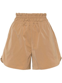 logo-embroidered shorts Highlights - Caramel brown - Recycled polyester - Embroidered logo to the front - Elasticated waistband - Two side slit pockets - Thigh-length Imported Composition Recycled Polyester 100%