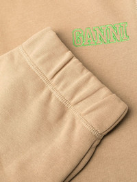 logo-embroidered track pants Distinctively GANNI, these track pants are made from an organic cotton blend in line with the brand's environmental values, whilst they are adorned with a contrasting lime green logo to the side for authenticity. Highlights - Light brown - Fluorescent green - Organic cotton blend - Embroidered logo to the side - Elasticated waistband - Elasticated ankles - Straight leg Imported Composition Organic Cotton 85%, Polyester 15% SIZE & FIT Model measurements Height 5 ft 10 in(1.77 m) Bust/Chest 32.67 in(83 cm) Hips 35.43 in(90 cm) Waist 23.62 in(60 cm) FittingInformation This piece fits true to size. We recommend you get your regular size Cut for a slim fit Made with a mid-weight fabric Washing instructions Machine Wash