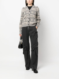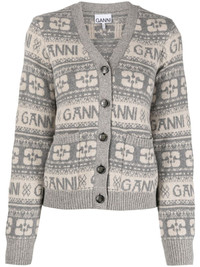 logo intarsia-knit V-neck cardigan Highlights - Cool grey/light beige - Wool-recycled wool-recycled polyamide blend - Intarsia-knit logo - V-neck - Front button fastening - Long sleeves - Ribbed cuffs and hem - Two front patch pockets - Straight hem Imported Composition Wool 45%, Recycled Wool 35%, Recycled Polyamide 20% SIZE & FIT Model measurements Height 5 ft 10 in(1.78 m) Bust/Chest 31.49 in(80 cm) Hips 36.22 in(92 cm) Waist 25.59 in(65 cm) FittingInformation Designed for a slim fit that sits just away from the body offering a close yet comfortable fit Made with a midweight knit, this piece offers some stretch This piece fits true to size – take your usual size Washing instructions Hand Wash