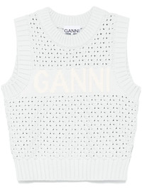 logo-intarsia vest Highlights - Light blue - Crew neck - Straight hem Imported Composition Organic Cotton 83%, Nylon 17% SIZE & FIT Model measurements Height 5 ft 11 in(1.8 m) Bust/Chest 33.07 in(84 cm) Hips 37.4 in(95 cm) Waist 25.19 in(64 cm) FittingInformation Designed for a relaxed fit, this piece allows for comfort and movement when worn Made with a midweight knit, this piece offers some stretch