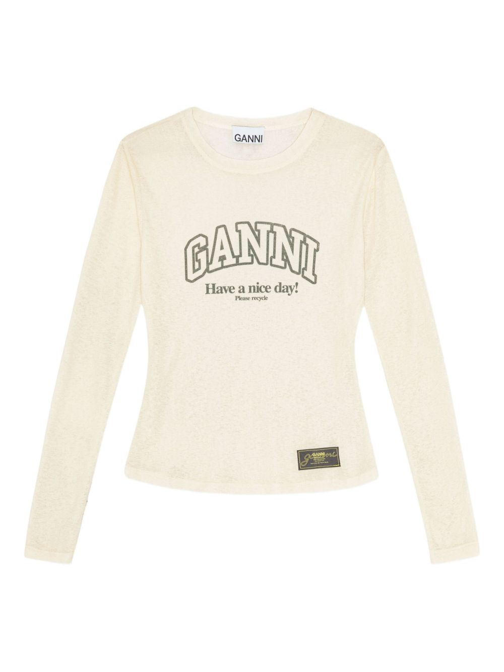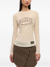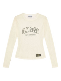 logo-print long-sleeve top Highlights - Cream - Front logo text - Embroidered back logo - Round neckline - Fitted sleeves Imported Composition Fabric 100% Washing instructions Read Manufacturer Guidelines