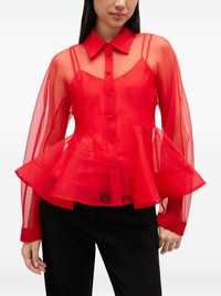 long-sleeve shirt Highlights - Red - Sheer finish - Button fastening - Long sleeves - Peplum hem Imported Composition Fabric 100% Washing instructions Read Manufacturer Guidelines