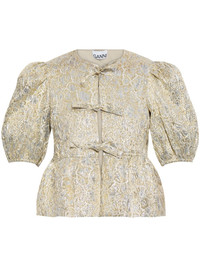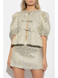 Lurex thread blouse Highlights - Gold-tone - Lurex detailing - Metallic effect - Self-tie fastening - Crew neck - Short puff sleeves - Peplum hem Imported Composition Outer: Recycled Polyester 50%, Polyamide 36%, Polyester 14% Lining: Recycled Polyester 100% SIZE & FIT Measurement SLEEVE LENGTH 13.38 in(34 cm) LENGTH 20.47 in(52 cm) WAIST 32.28 in(82 cm)