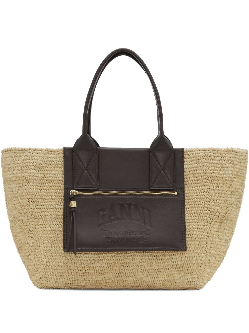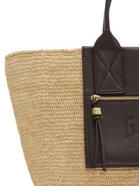 medium raffia tote bag Highlights - Light beige - Open top - Two top handles - Front zip-fastening pocket - Embossed logo to the front Imported Composition Lining: Recycled Cotton 65%, Cotton 35% Outer: Raffia 100% SIZE & FIT Measurement DEPTH 7.08 in(18 cm) HEIGHT 11.22 in(28.5 cm) WIDTH 12.99 in(33 cm)