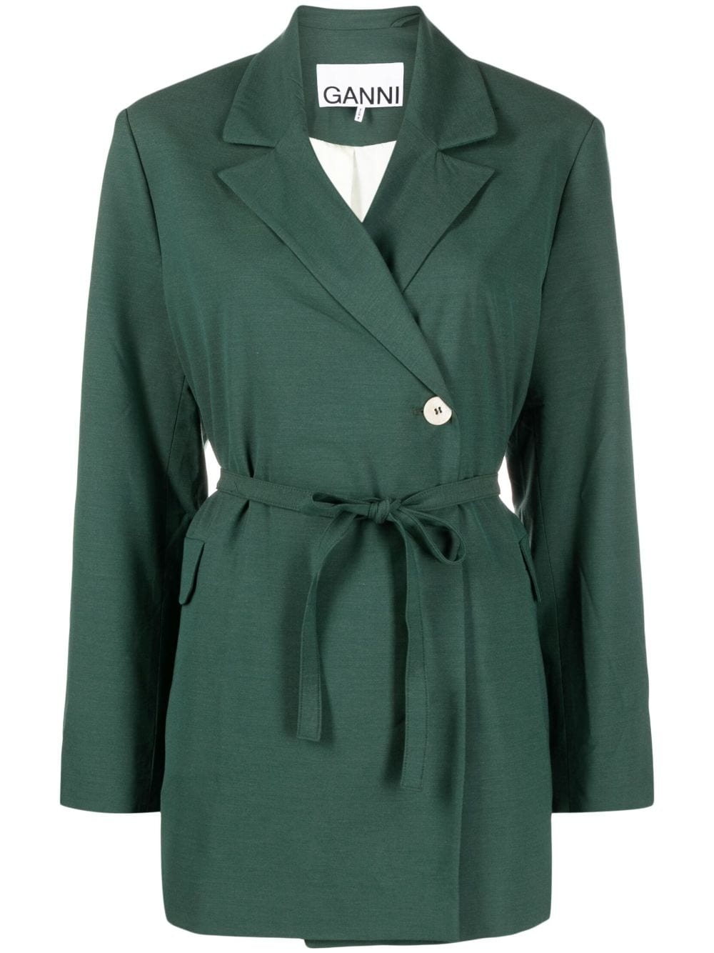off-centre belted blazer Highlights - Dark green - Recycled polyester blend - Notched lapels - Off-centre front button fastening - Belted waist - Long sleeves - Two front flap pockets - Straight hem Imported Composition Outer: EcoVero Viscose (LENZING) 48%, Recycled Polyester 47%, Spandex/Elastane 5% Lining: Polyester 100% SIZE & FIT Model measurements Height 5 ft 10 in(1.78 m) Bust/Chest 30.7 in(78 cm) Hips 34.64 in(88 cm) Waist 23.22 in(59 cm) Washing instructions Dry Clean Only