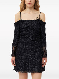 off-shoulder bow-pattern minidress