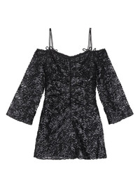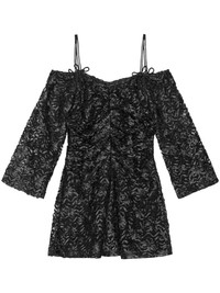 off-shoulder bow-pattern minidress Highlights - Black - Recycled polyester - Satin trim - Bow detailing - Tulle inserts - Square neck - Off-shoulder - Rear zip fastening - Spaghetti straps - Slip dress insert Imported Composition Recycled Polyester 100% Washing instructions Read Manufacturer Guidelines