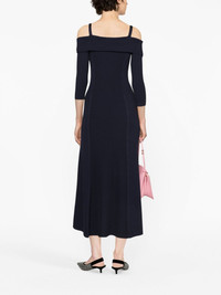 off-shoulder midi dress Based in Copenhagen, GANNI is the fashion brand bringing the cool factor to everyday dressing. A prime example, this dress features a folded off-shoulder neckline with slim straps and a thigh-hight side split at the hem. Highlights - Navy blue - Ribbed knit - Wide shoulder straps - Off-shoulder - Mid-length Imported Composition Rayon 56%, Polyamide 43%, Spandex/Elastane 1% SIZE & FIT Model measurements Height 5 ft 10 in(1.78 m) Bust/Chest 30.7 in(78 cm) Hips 34.64 in(88 cm) Waist 23.22 in(59 cm) FittingInformation Designed for a slim fit that sits just away from the body offering a close yet comfortable fit Made from a midweight stretch fabric, this piece offers elasticity and flexibility when worn This piece fits true to size – take your usual size Washing instructions Machine Wash