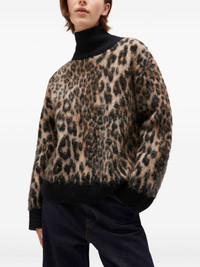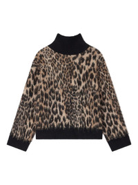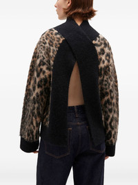 open-back leopard-print sweater Highlights - Beige and black - High neck - Open back - Long sleeves - Ribbed hem and cuffs Imported Composition Alpaca Wool 32%, Merino 32%, Polyamide 30%, Elastane 6% Washing instructions Hand Wash