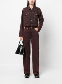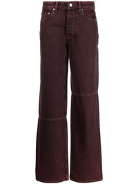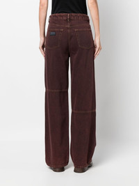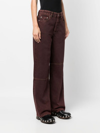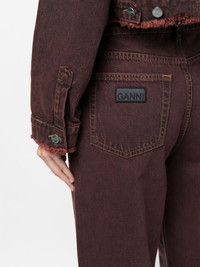 Overdyed Izey wide-leg jeans These brown-hued GANNI jeans are cut to a relaxed wide-leg silhouette from heavy organic cotton denim for reduced environmental impact. A rear logo patch finishes off the design. Highlights - Chocolate-brown wash - Organic cotton denim - Wide leg - Logo patch to the rear - Mid-rise - Belt loops - Front button and zip fastening - Classic five pockets Imported Composition Organic Cotton 100% SIZE & FIT Model measurements Height 5 ft 10 in(1.78 m) Bust/Chest 33.46 in(85 cm) Hips 36.22 in(92 cm) Waist 23.22 in(59 cm) Measurement FRONT RISE 12.2 in(31 cm) INSIDE LEG 30.7 in(78 cm) HIPS 41.73 in(106 cm) FittingInformation Designed for a straight-leg fit, these jeans allow for a close fit at the waist and an unrestricted and comfortable fit over the leg Sturdy and hard-wearing, this denim piece offers no stretch This piece fits true to size – take your usual size Washing instructions Machine Wash