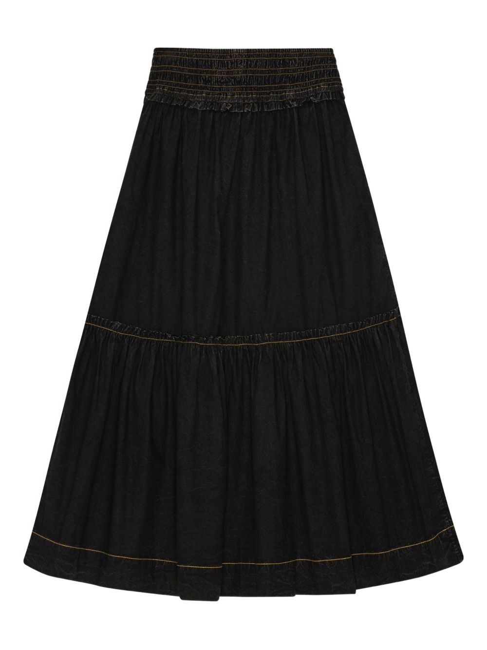 panelled A-line skirt Highlights - Black - Elasticated waistband - Contrast stitching - Ruffled detailing - Long length Imported Composition Fabric 100% Washing instructions Read Manufacturer Guidelines