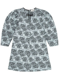 patterned-jacquard mini dress Highlights - Blue - Patterned jacquard - All-over floral print - V-neck - Rear zip fastening - Three-quarter length puff sleeves - Straight hem - Thigh-length Imported Composition Recycled Polyester 50%, Polyester 45%, Polyamide 5% SIZE & FIT Measurement HIPS 47.24 in(120 cm) LENGTH 32.67 in(83 cm) WAIST 43.3 in(110 cm)
