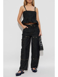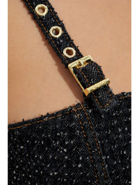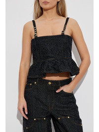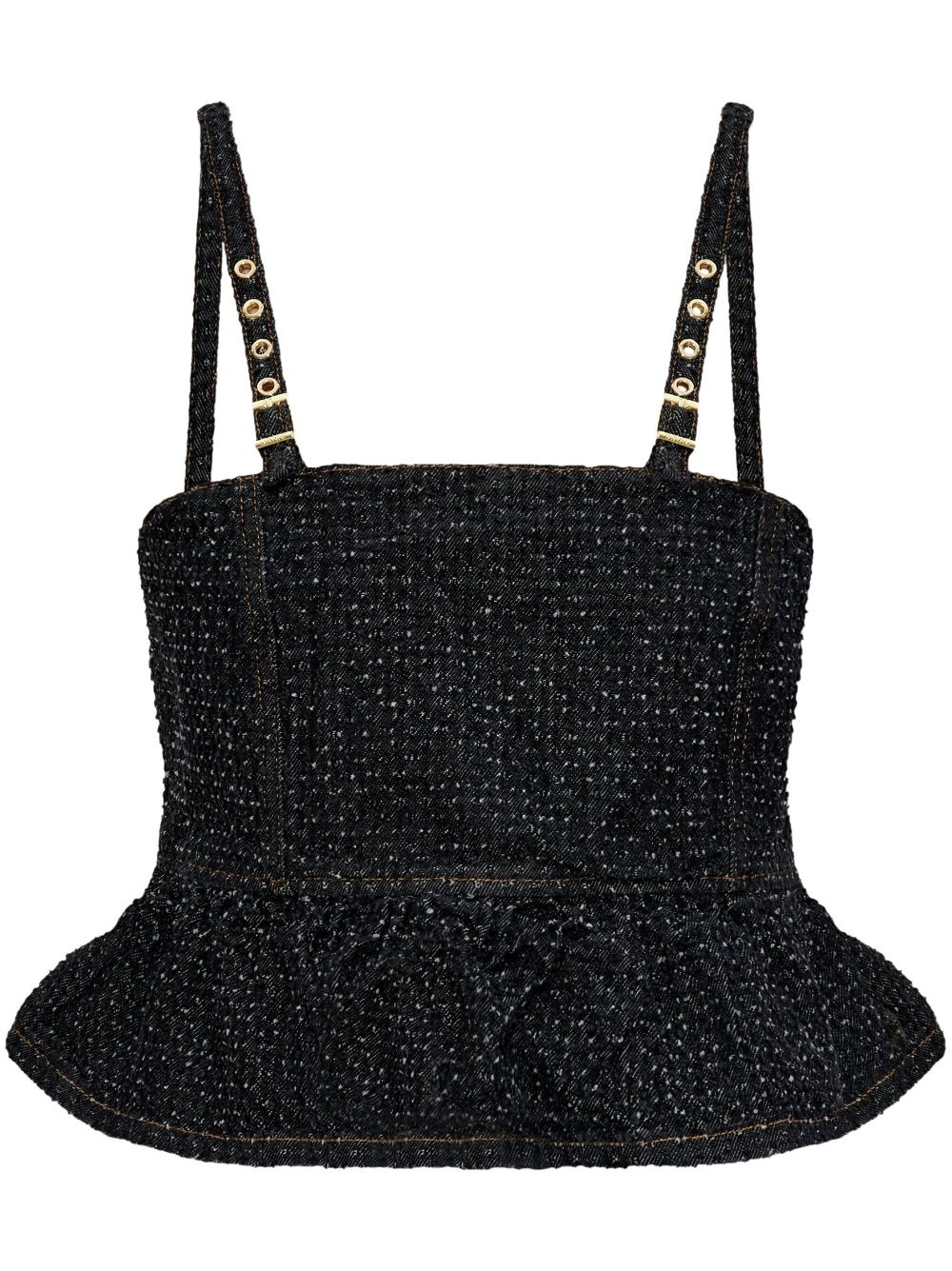 peplum denim top Highlights - Black - Adjustable spaghetti straps Imported Composition Outer: Organic Cotton 100% Lining: Recycled Polyester 100%