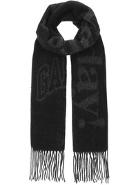 Please Recycle scarf Highlights - Black - Recycled wool blend - Knitted construction - Wraparound style - Rectangle shape - Jacquard logo motif - Jacquard slogan motif - Fringed edge Made in Italy Composition Recycled Wool 90%, Wool 10% Washing instructions Read Manufacturer Guidelines